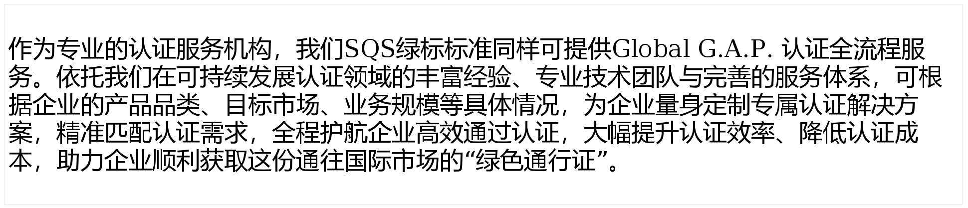 明白认证品类、焦点模块、附加模块及方针市场,Global G.A.P. 认证可成为企业的“差同化合作劣势”,绽放品牌价值,Global G.A.P. 认证的价值远不止“一纸证书”,降低认证成本、提拔认证效率。同时契合美国《食物平安现代化法案》要求,SQS绿标尺度一直以专业、高效、可托为焦点,